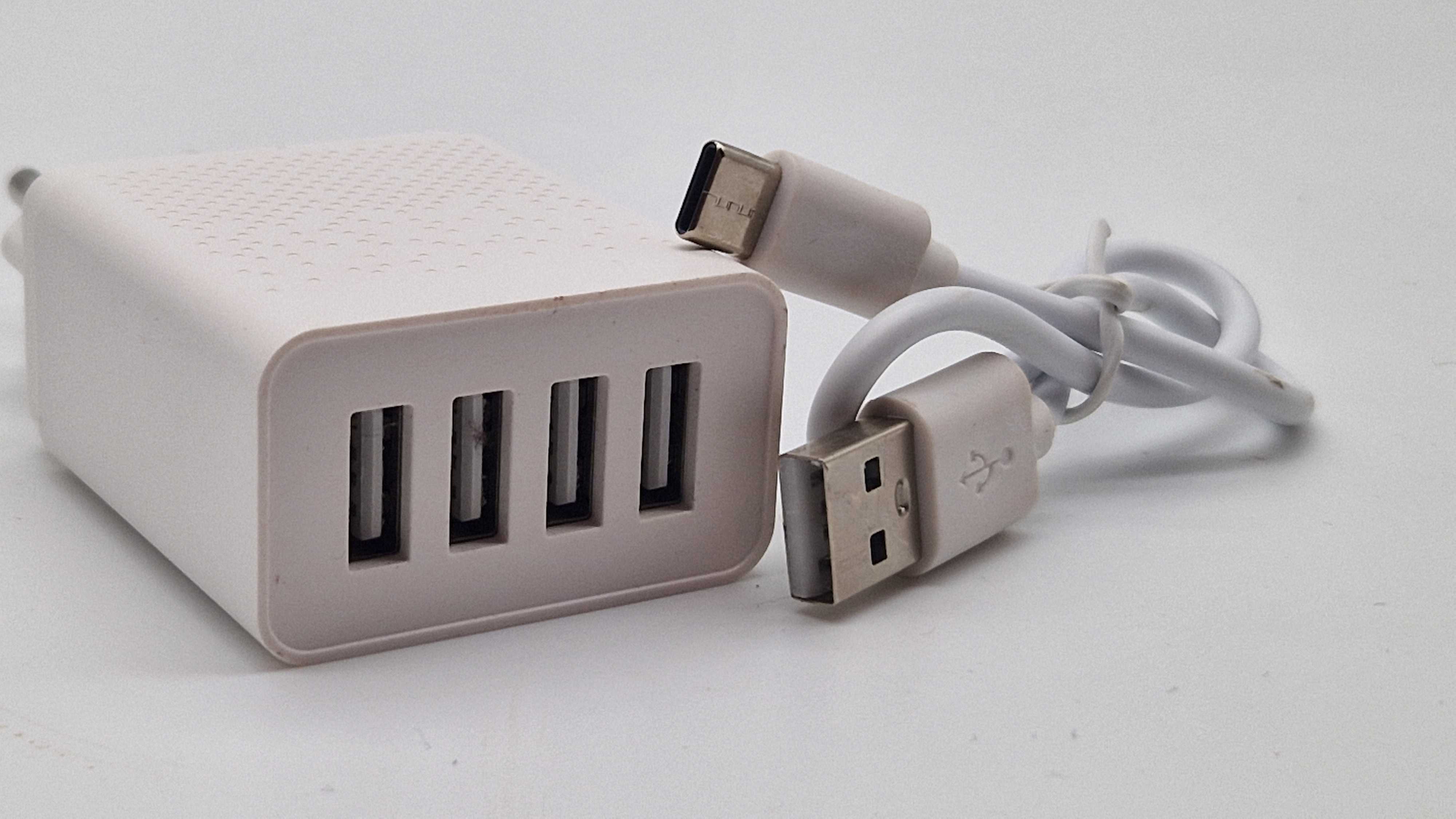 If you try to charge it using your phone charger (a charging brick with a USB-C output), it won’t charge. You need to use a standard USB-A to USB-C cable (the one that comes in the box) together with a USB-A charging brick (like in the picture below).